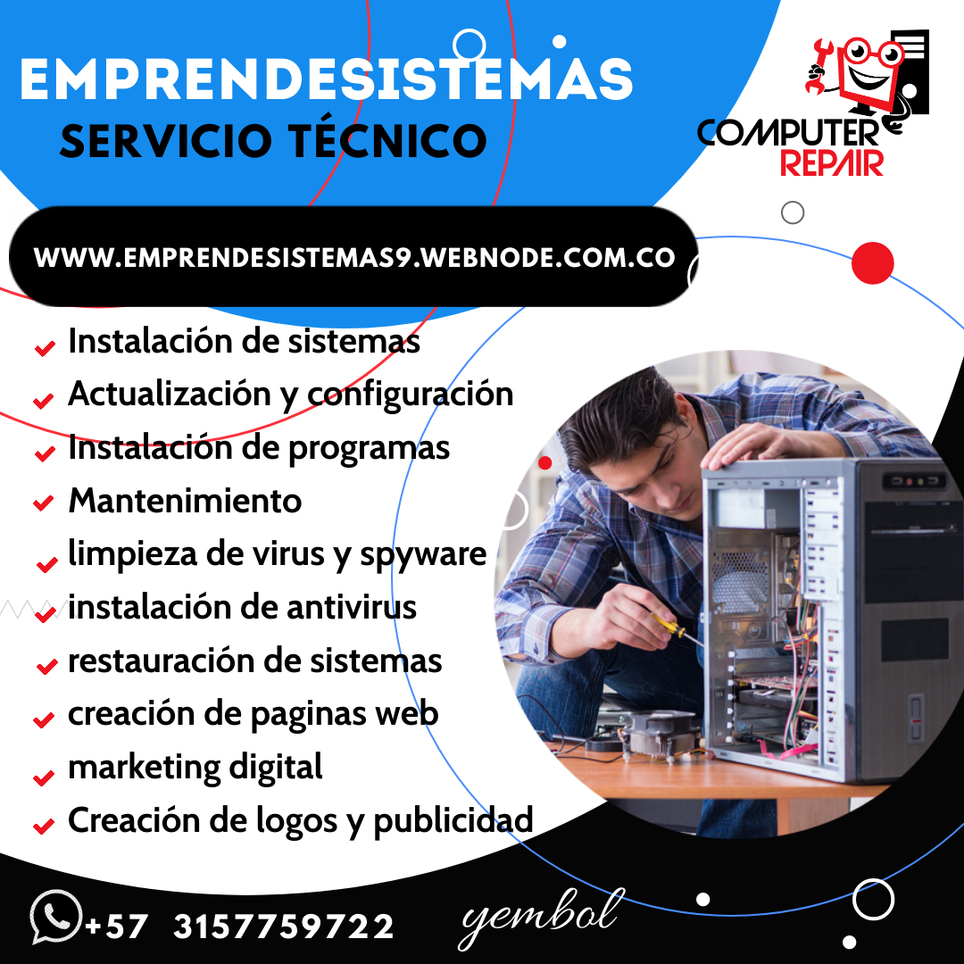 Diseñamos y creamos tu pagina web, creamos toda clase de publicidad para ti y tu empresa, hacemos mantenimiento preventivo para tu computador portátil o de mesa. Damos a conocer artistas empresas manejamos varios paquetes publicitarios, pauta yu campañas para posicionar tu empresa o marca.
